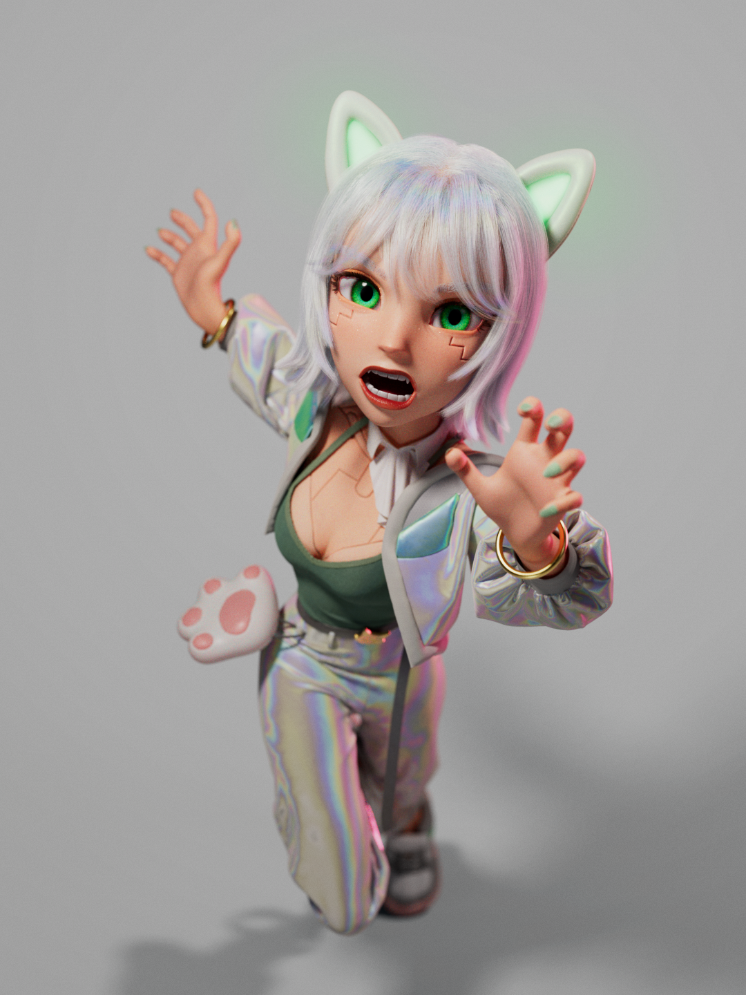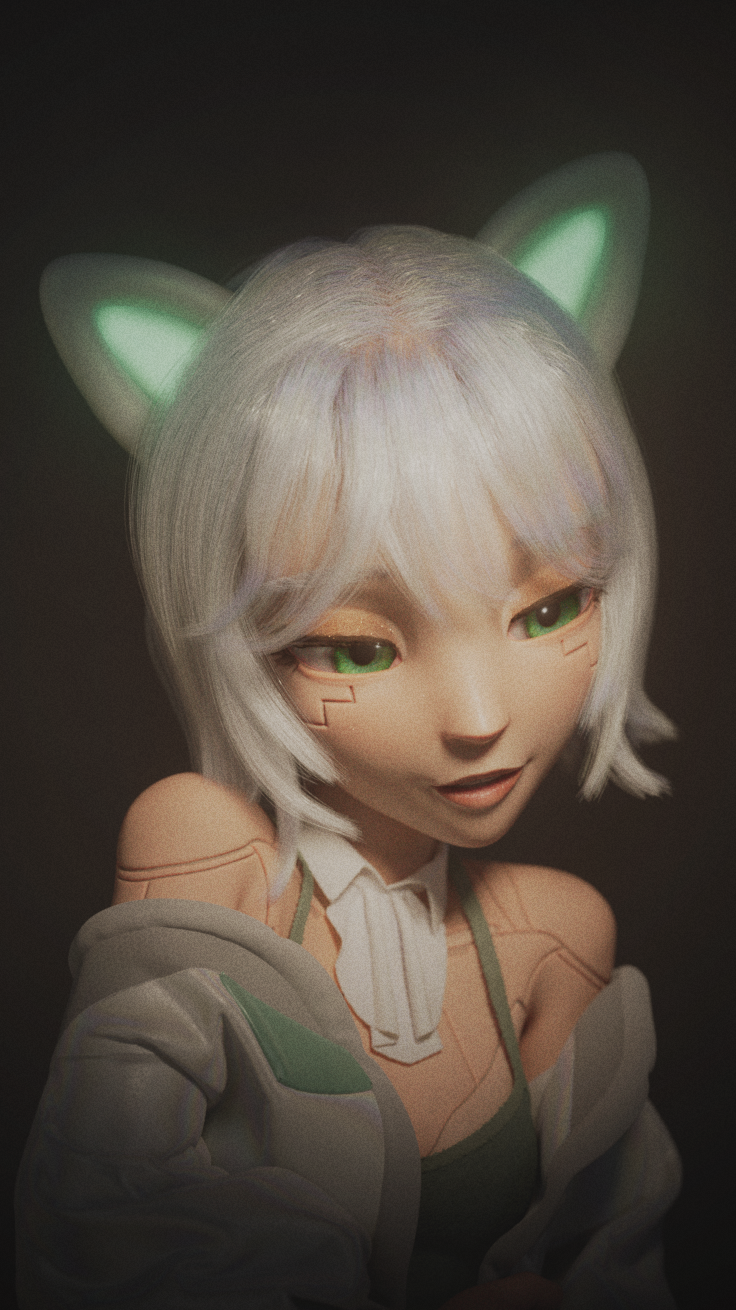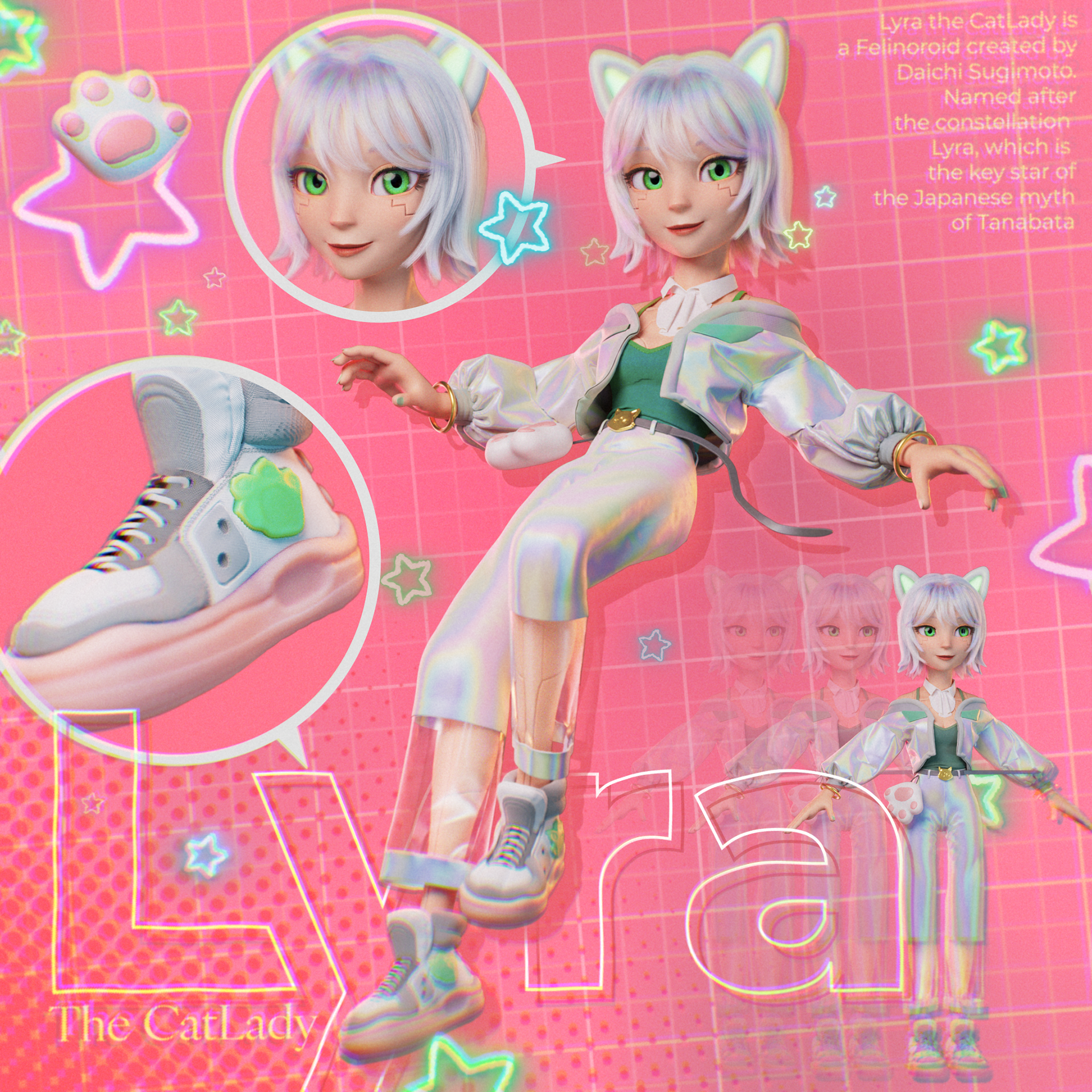 Lyra the CatLady is my original character, depicting a felinoroid with a sci-fi and cyberpunk aesthetic.
