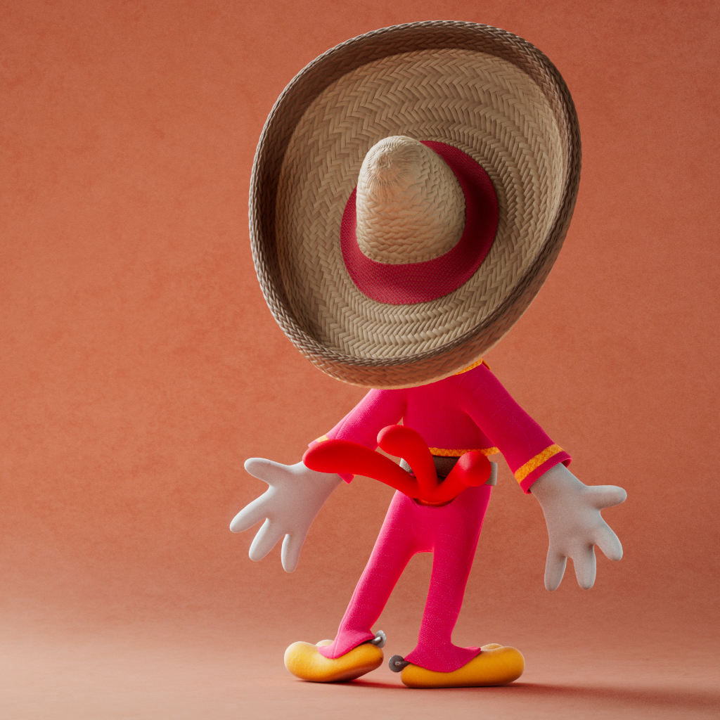 I recreated Panchito from Disney's "The Three Caballeros" in 3DCG, inspired by the way of stylization in "Wreck-It Ralph 2".